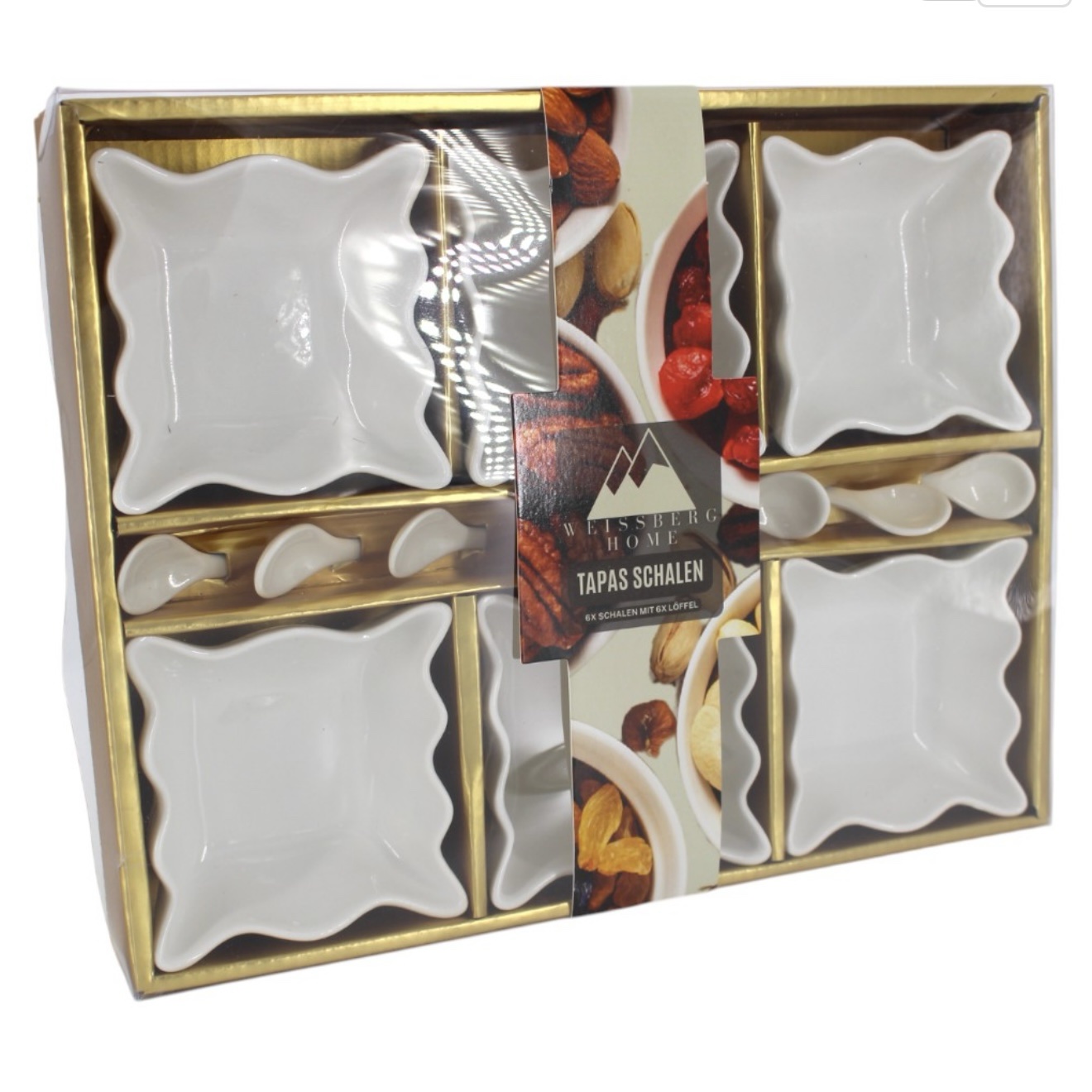 Das Weissberg Home Tapas Schalen Set besteht aus sechs formschönen Schalen inklusive passender Mini-Löffel. İdeal für Tapas, Antipasti, Dips, Oliven, Saucen oder kleine Desserts. Dank der harmonischen Form und dem strahlenden Weiß des Porzellans lassen sich Speisen besonders appetitlich präsentieren. Ob beim Familienabend, einem festlichen Buffet oder in der täglichen Küche.